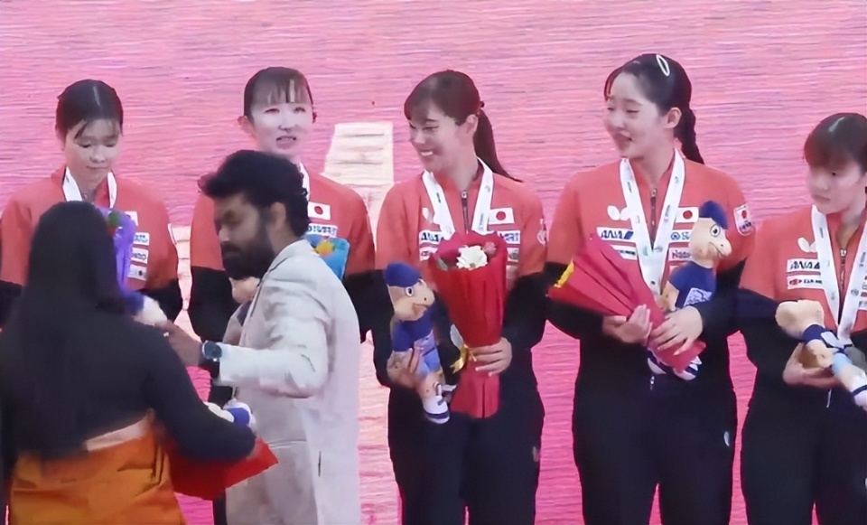 2025年乒乓团体亚锦赛女团颁奖典礼上,亚军获得队伍日本队的多位球员都露出了笑容:张本美和、早田希娜、长崎美柚、大藤沙月、桥本帆乃香,感觉她们拿到一枚银牌也挺开心的。
